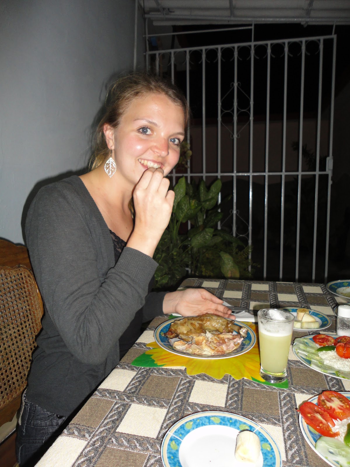 Vi boede som sagt udenfor byen, paa en form for gaard med hoens, grise, hunde og katte. Der var ogsaa mango- og kaffetraer samt bananpalmer. Der voksede ogsaa guaba frugter, der skulle vaere fulde af vitaminer - det fik vi i hvert fald at vide igen og igen.